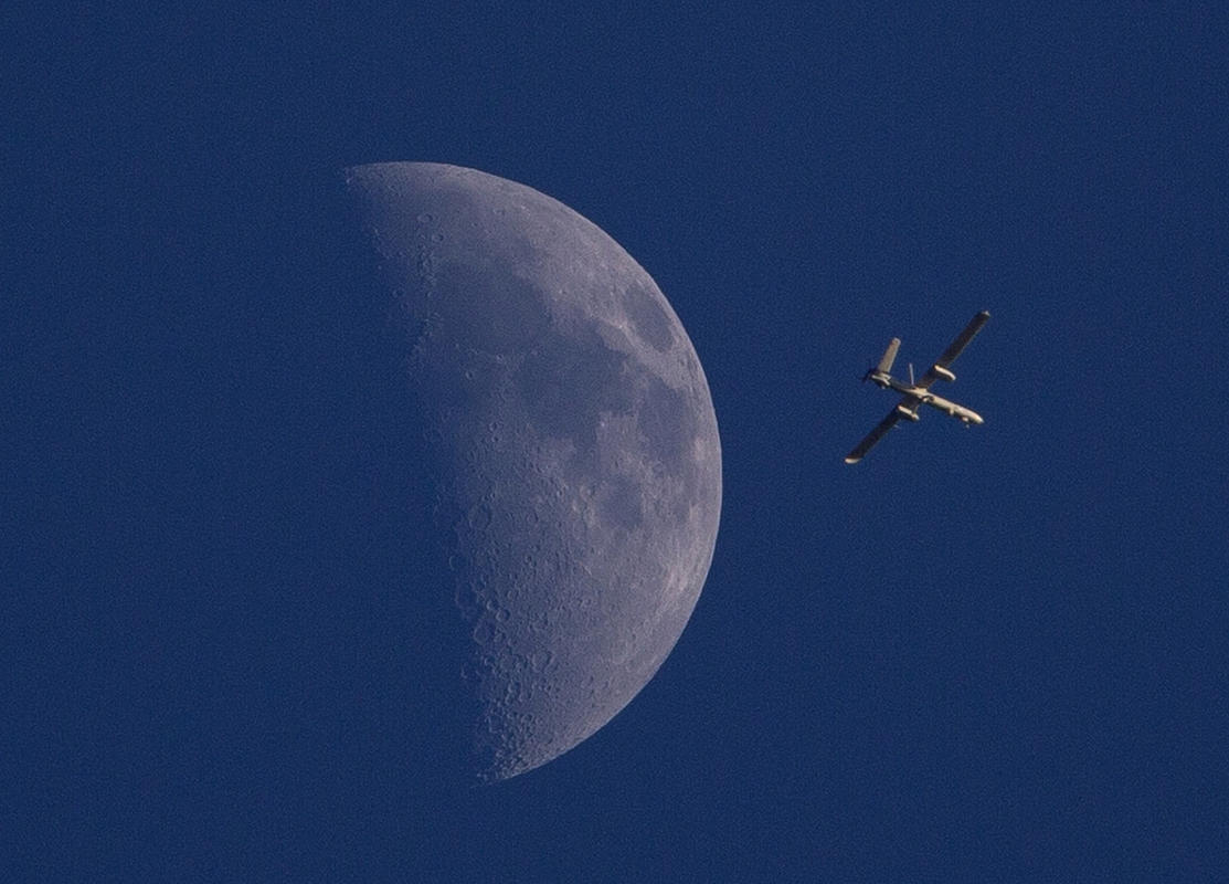 An Israeli drone circles over Gaza City, children play with foam bubbles from soap during the fair in honor of “Nuestra Senora de los Angeles” in the village of Las Pinedas in Spain and Tiger Woods makes an awkward follow through after hitting from the lip of a fairway bunker on the second hole during the final round of the Bridgestone Invitational golf tournament are some of the photos of the day.
